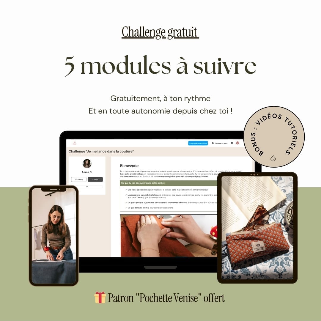 Petit pas aujourd’hui, grand projet demain. Tu n’as besoin de rien, juste de l’envie de créer. Rejoins dès maintenant le challenge gratuit "Je me lance dans la couture".